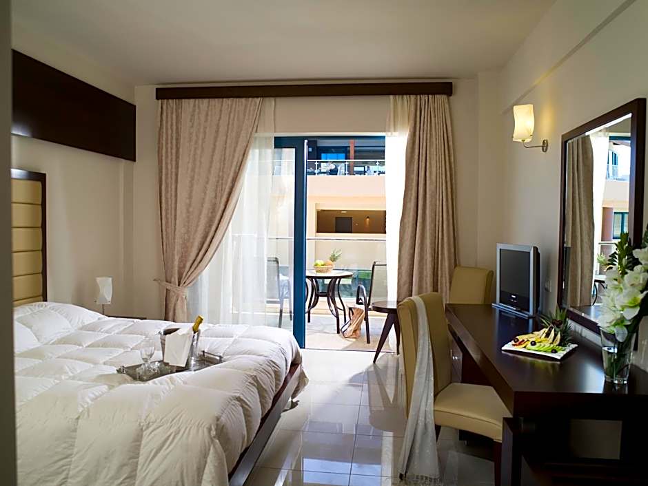Enjoying side views of the Cretan Sea from its furnished balcony, this elegantly decorated room offers free Wi-Fi. Facilities include: -satellite LCD TV -mini fridge -bathrobes and slippers -free toiletries.